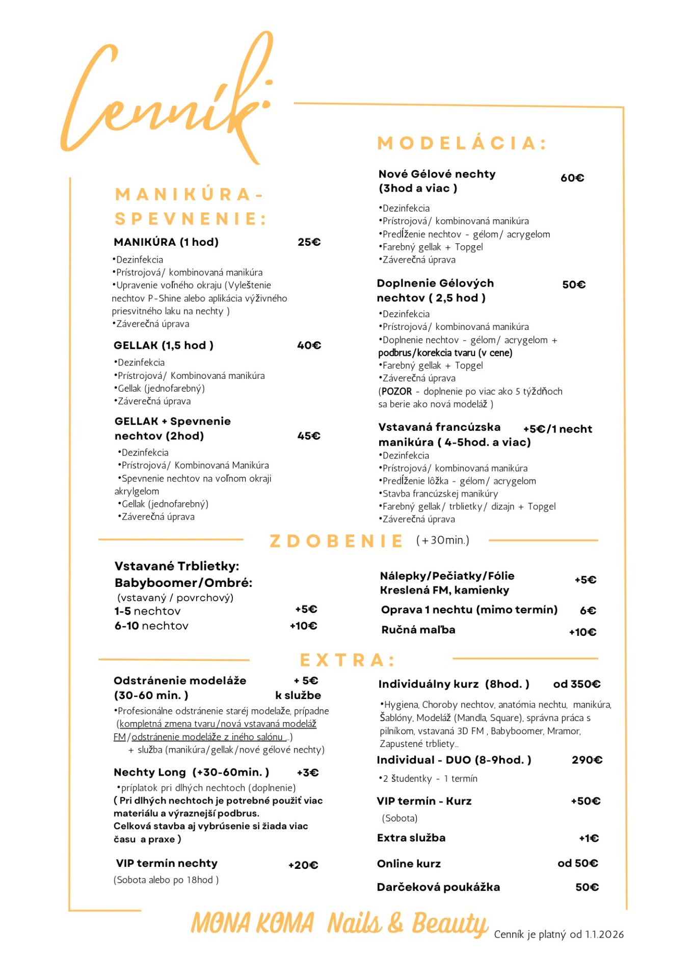 Cenník je platný od 1.1.2025